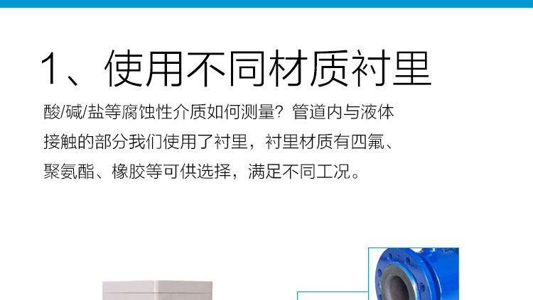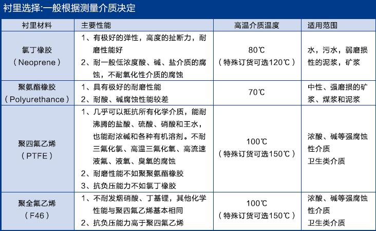 c、為適應(yīng)不同介質(zhì)測量的要求,傳感器的襯里和電極材料可以有多種選擇。