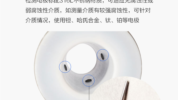 4、傳感器部分只有內(nèi)襯和電極與被測液體接觸,只要合理選擇電極和內(nèi)襯材料,即可耐腐蝕和耐磨損。