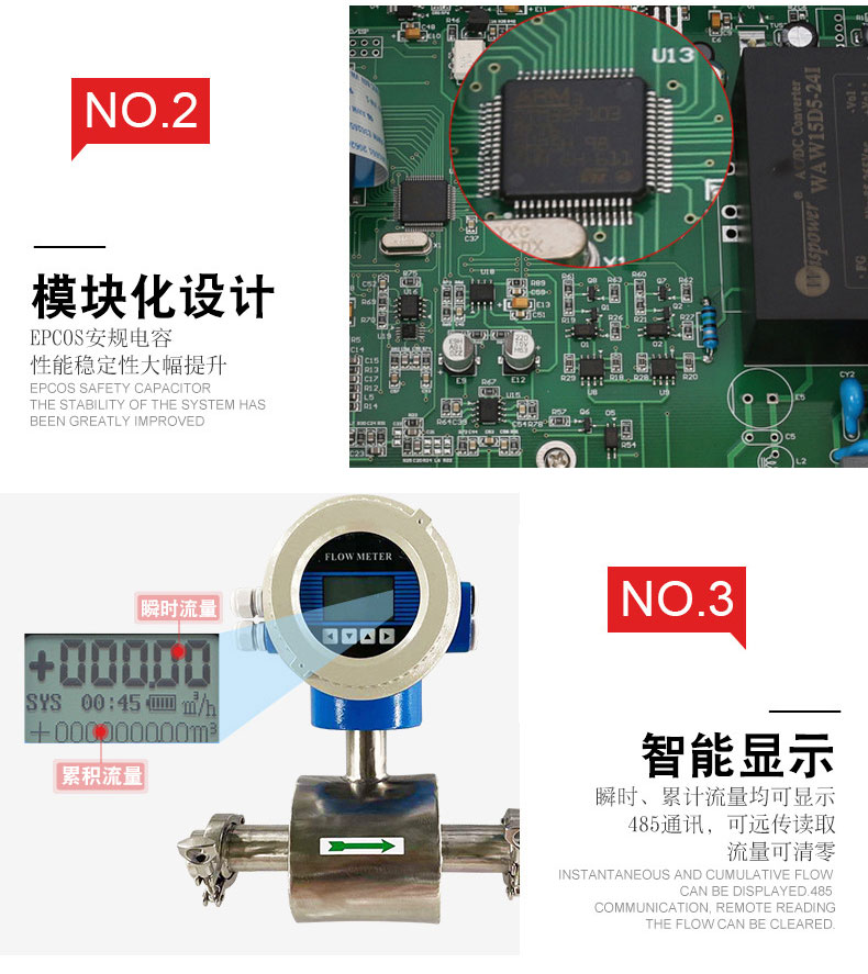 13、高清晰度背光中文LCD顯示,顯示累積流量、瞬時(shí)流量、流速、流量百分比等。