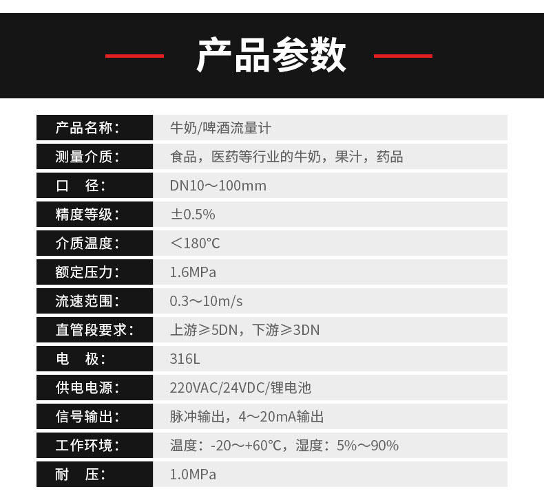 衛(wèi)生型電磁流量計(jì)在食品、醫(yī)藥等衛(wèi)生行業(yè),其工藝過(guò)程往往需要定期使用高溫蒸汽進(jìn)行清洗消毒,并且包括流量計(jì)傳感器在內(nèi)的管線接頭部位不能有殘留的介質(zhì),以防止細(xì)菌繁殖,因此衛(wèi)生行業(yè)管道與流量計(jì)連接一般采用快速接頭形式,即卡箍型結(jié)構(gòu)。**地應(yīng)用于化工、環(huán)保、冶金、食品、醫(yī)藥、造紙、給排水等行業(yè)。