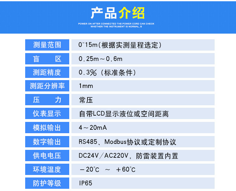 2、盲區(qū): 0.6m l 精度:量程的0.25%或1cm;