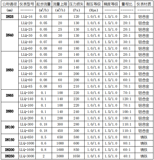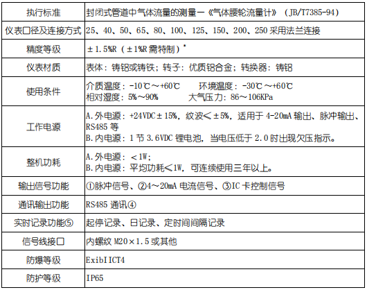 3、氣體腰輪流量計(jì)基本參數(shù)