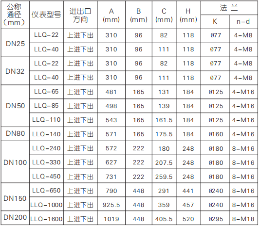 四、氣體腰輪流量計(jì)外形尺寸