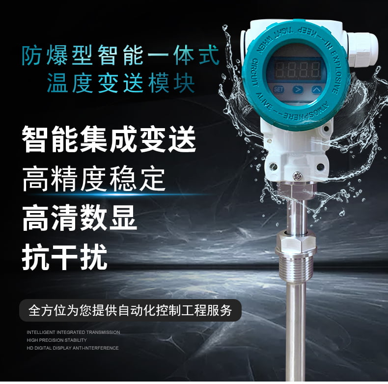 一體化數(shù)顯溫度變送器與工業(yè)熱電偶、熱電阻配套使用,采用二線制傳輸方式(兩根導(dǎo)線作為電源輸入和信號(hào)輸出的公用傳線)。溫度變送器是現(xiàn)代工業(yè)現(xiàn)場、科研院所溫度測控的更新?lián)Q代產(chǎn)品,是集散系統(tǒng)、數(shù)字總線系統(tǒng)的必備產(chǎn)品。