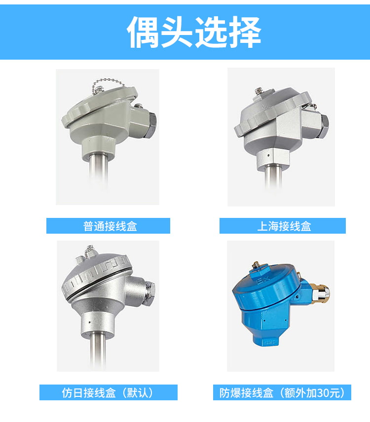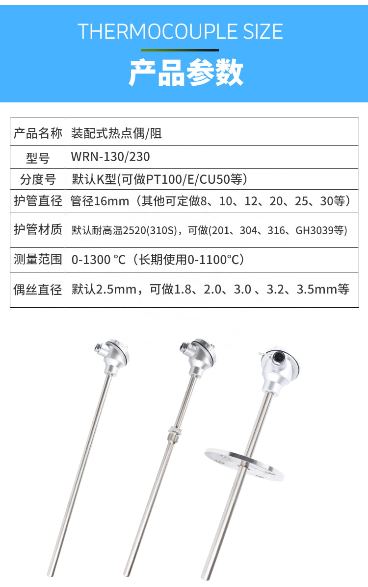 熱電偶的熱電動熱將隨著測量端溫度升高而增長,它的大小只與熱電偶材料和兩端的溫度有關(guān)、與熱電極的長度、直徑無關(guān)。各種的外形常因需要而極不相同,但是它們的基本結(jié)構(gòu)卻大致相同,通常由熱電極、絕緣套保護(hù)管和接線盒等主要成分組成。