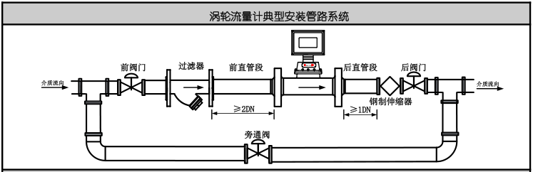 6、氣體渦輪番量計應(yīng)程度裝置。倡議在流量計后直管段后側(cè)裝置鋼制伸縮器(補償器),伸縮器必需契合管道設(shè)計的公稱通徑和公稱壓力的請求。伸縮器是作為管道應(yīng)力的補償及便當(dāng)流量計的裝置與拆卸。