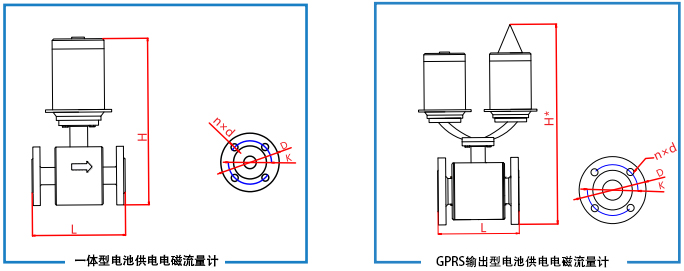六、電池供電電磁流量計(jì)外形結(jié)構(gòu)及尺寸