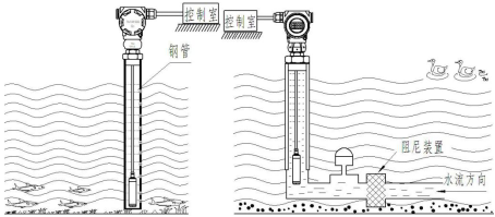 二、投入式液位變送器在動(dòng)水中安裝(江河、河流、湖泊等)
