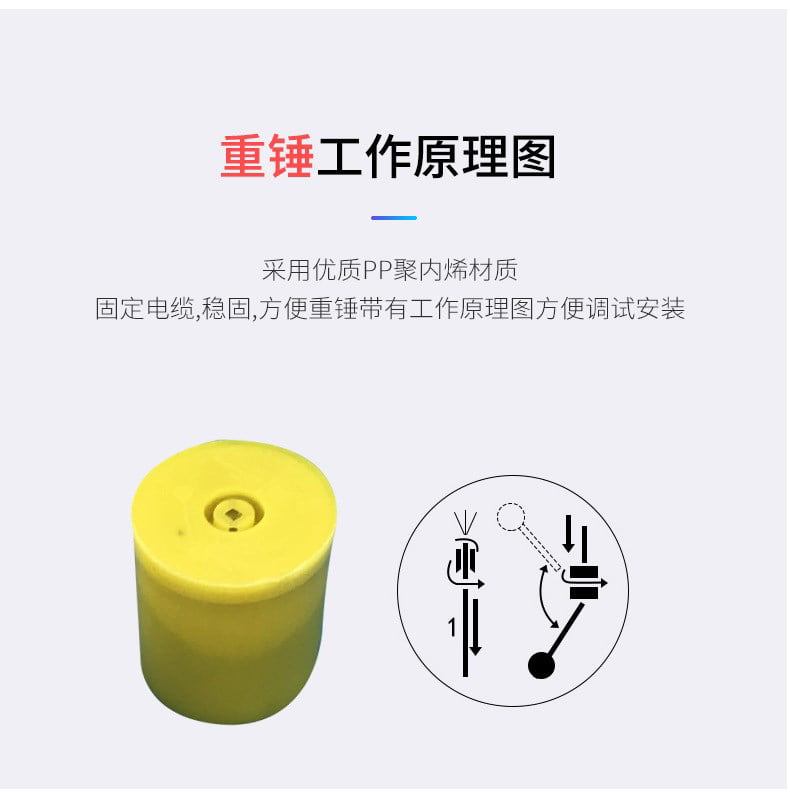 5、安裝簡(jiǎn)捷,調(diào)試方便,上下移動(dòng)定位重塊,即可隨意調(diào)節(jié)淮面控制范圍。