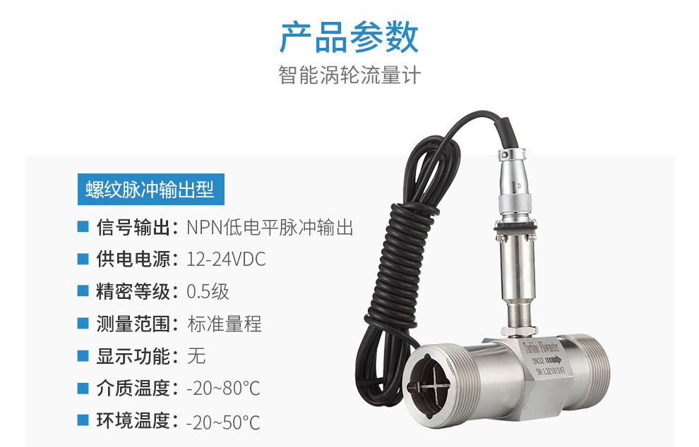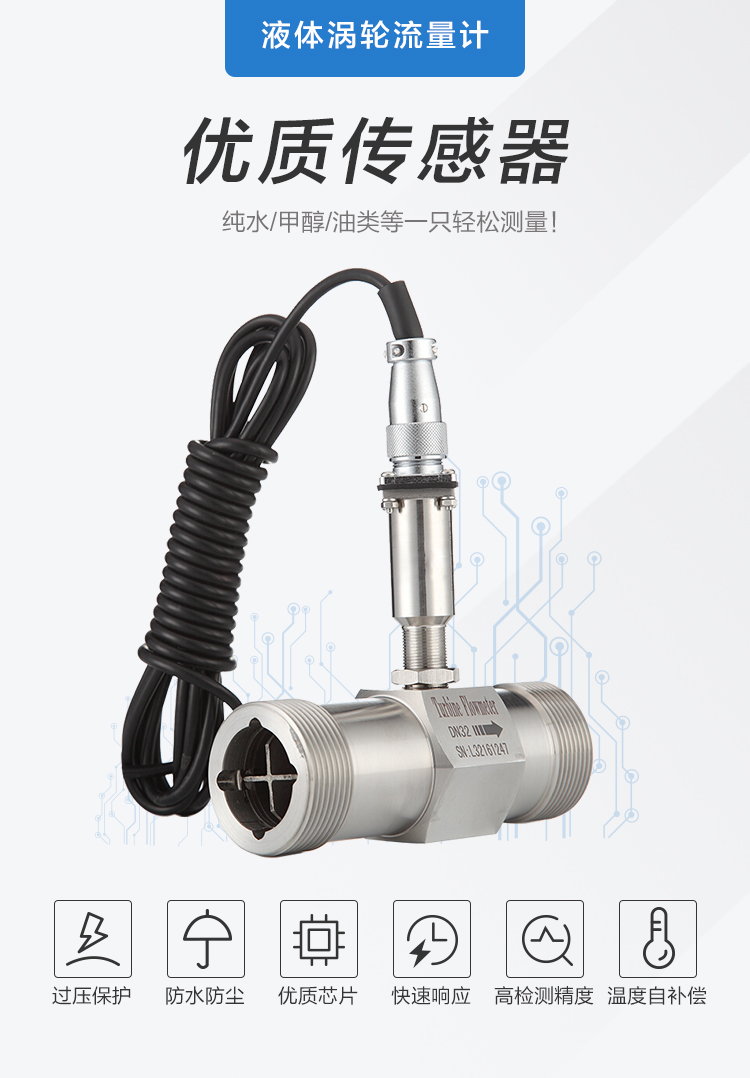 脈沖輸出液體渦輪流量計(jì)是一種精密流量測(cè)量?jī)x表,與相應(yīng)的流量積算儀表配套可用于測(cè)量液體的流量和總量。液體渦輪流量計(jì)**用于石油、化工、冶金、科研等領(lǐng)域的計(jì)量、控制系統(tǒng)。配備有衛(wèi)生接頭的液體渦輪流量計(jì)可以應(yīng)用于制藥行業(yè)。
