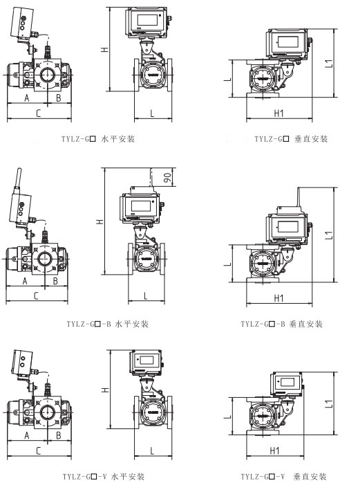 (1)TYLZ-G口型:適用于需求完成壓力、溫度自動檢測修正的場所。