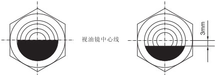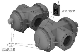 2、若油位低于視油鏡中心線3mm,闡明光滑油損耗,需補充至油視鏡中心線。注油口和視油鏡位置。