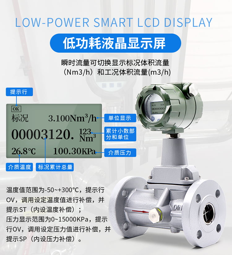 智能旋進(jìn)旋渦氣體流量計采用**的微處理技術(shù),具有功能強、流量范圍寬、操作維修簡單,安裝使用方便等優(yōu)點,主要技術(shù)指標(biāo)達(dá)到國外同類產(chǎn)品的**水平???*應(yīng)用于石油、化工、電力、冶金、煤炭等行業(yè)各種氣體的計量。