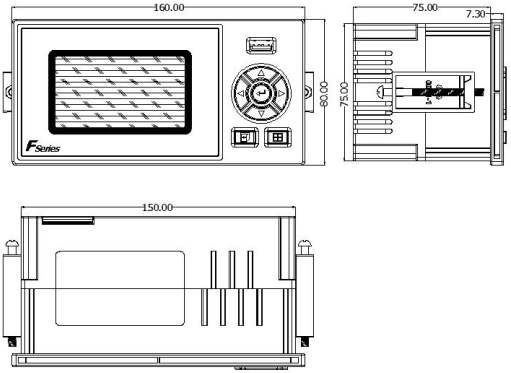 1、將儀表從安裝面板(請使用鋼板)前方推入安裝孔中。其中安裝面板厚度為(1.5~6.5)mm。