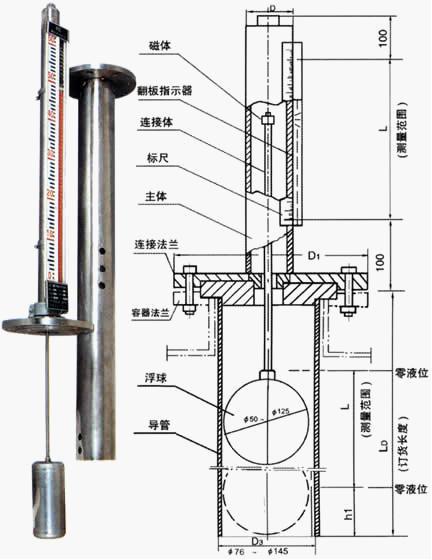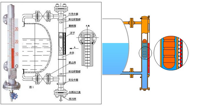 二、側(cè)裝式磁翻板液位計(jì)工作原理